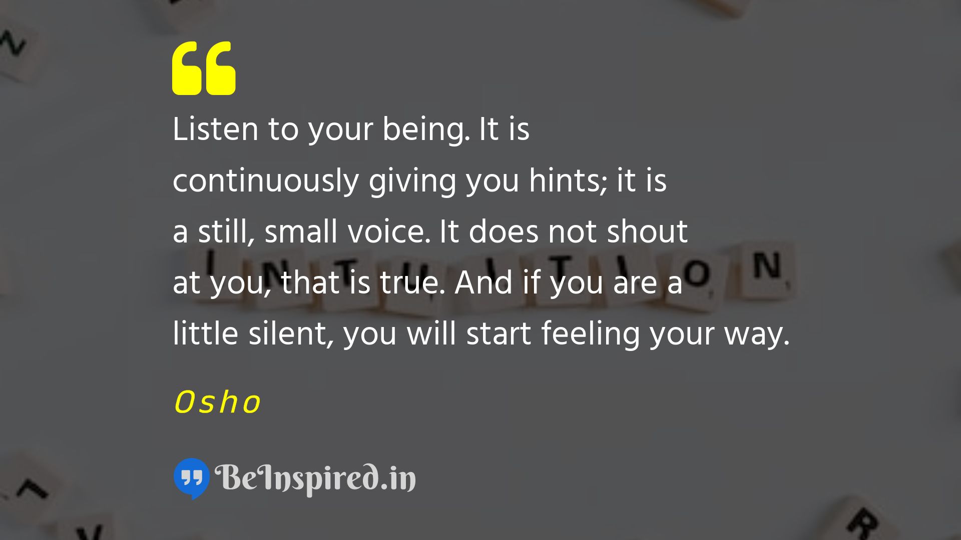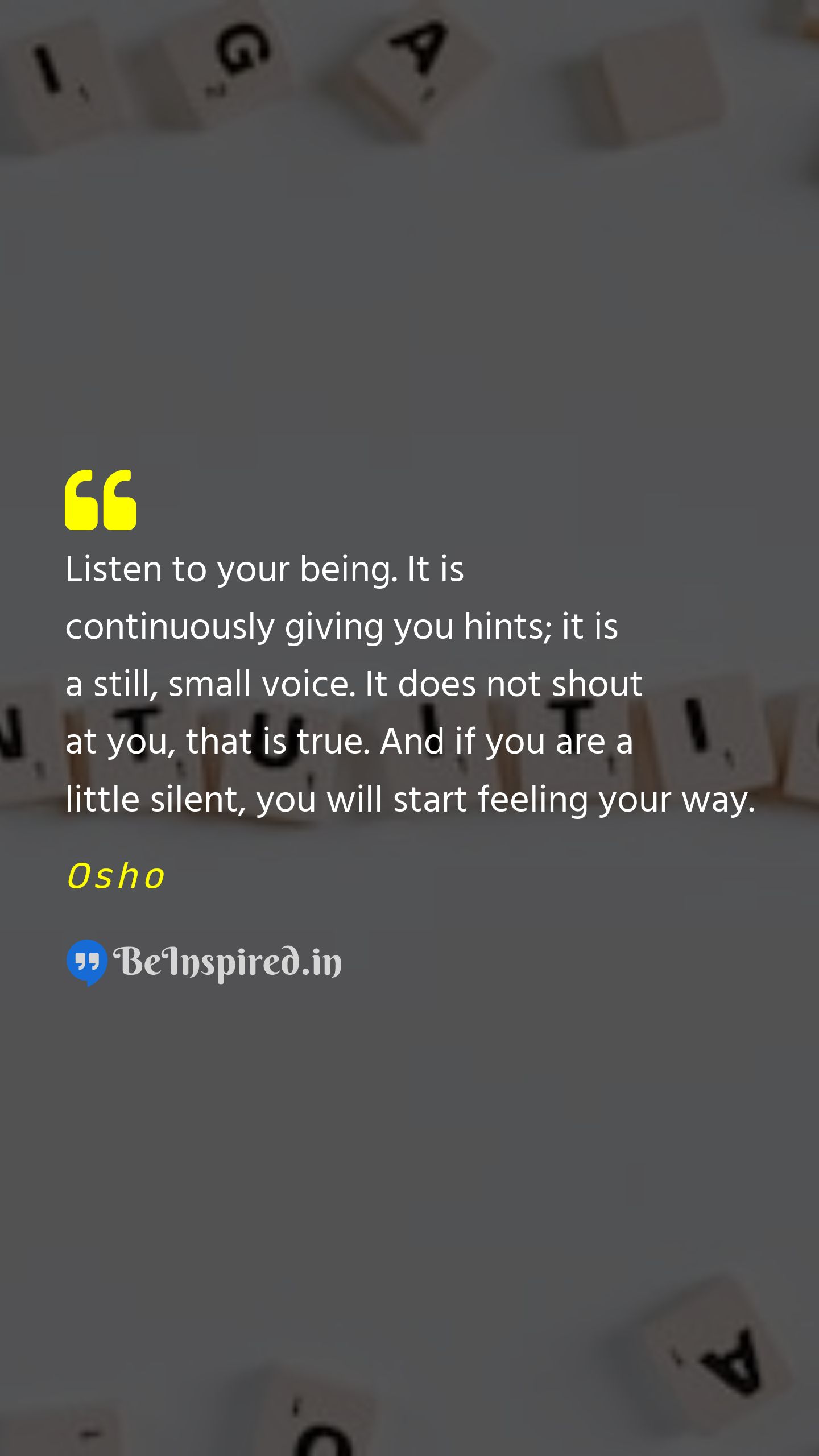 Listen to your being. It is continuously giving you hints; it is a still, small voice. It does not shout at you, that is true. And if you are a little silent, you will start feeling your way.