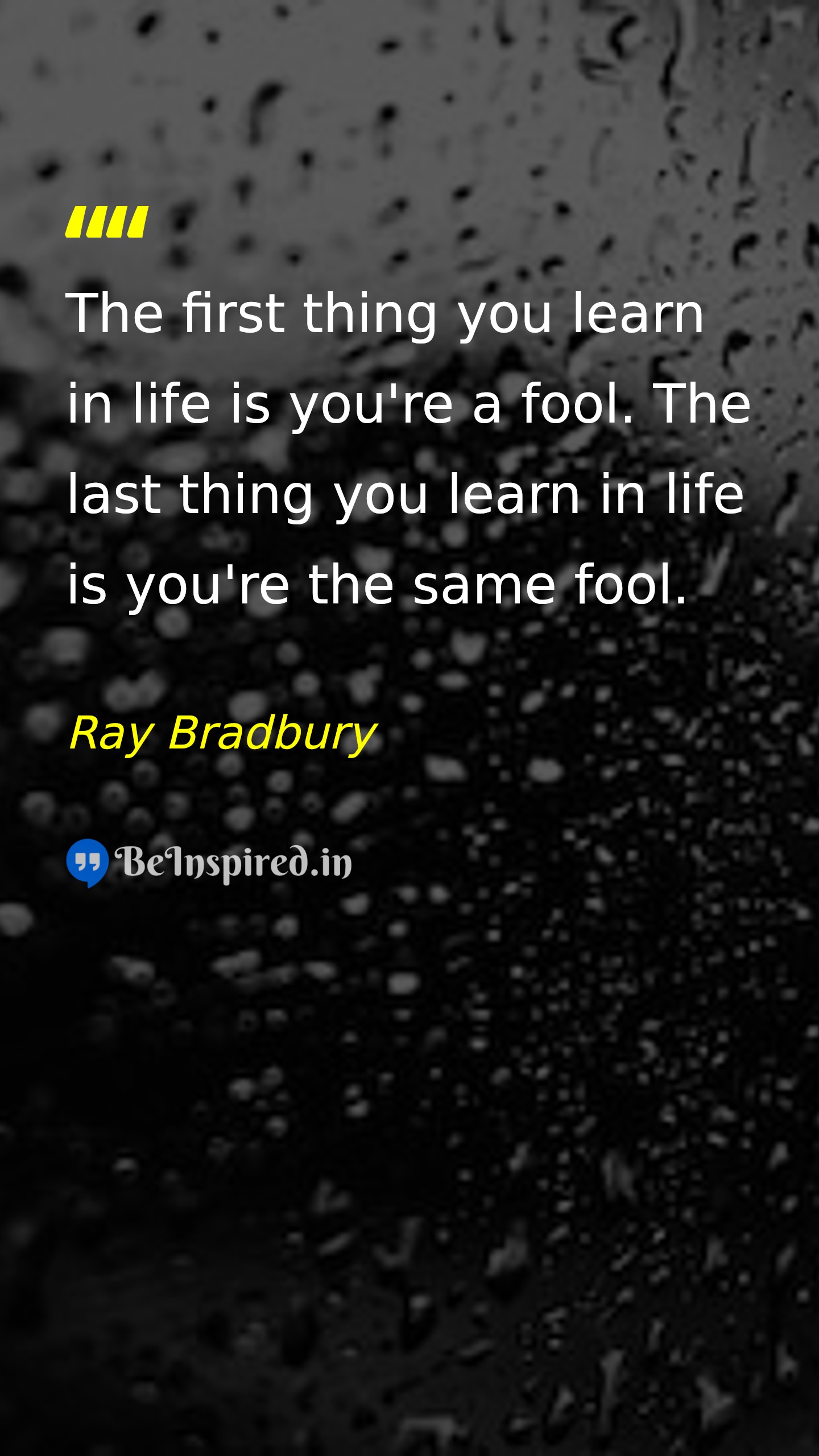 The first thing you learn in life is you're a fool. The last thing you learn in life is you're the same fool.