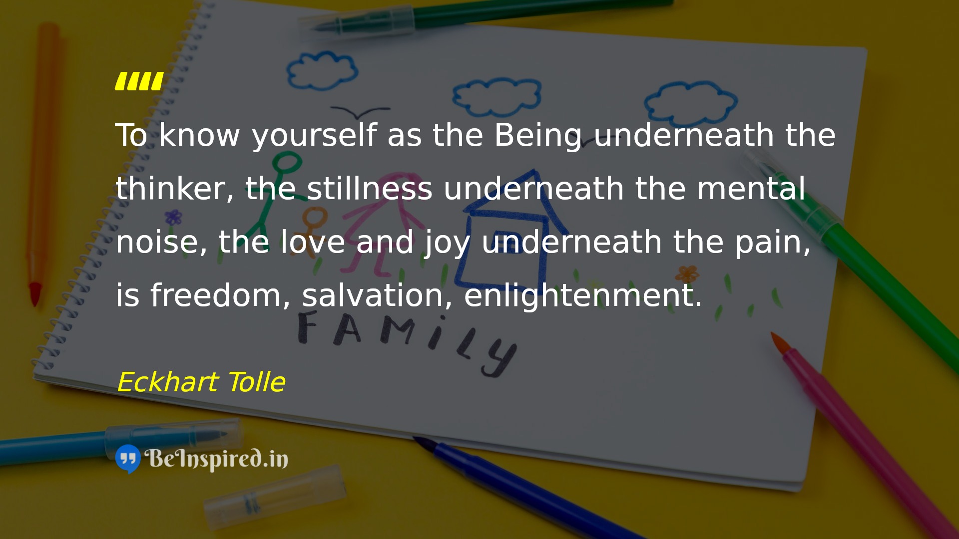 To know yourself as the Being underneath the thinker, the stillness underneath the mental noise, the love and joy underneath the pain, is freedom, salvation, enlightenment.