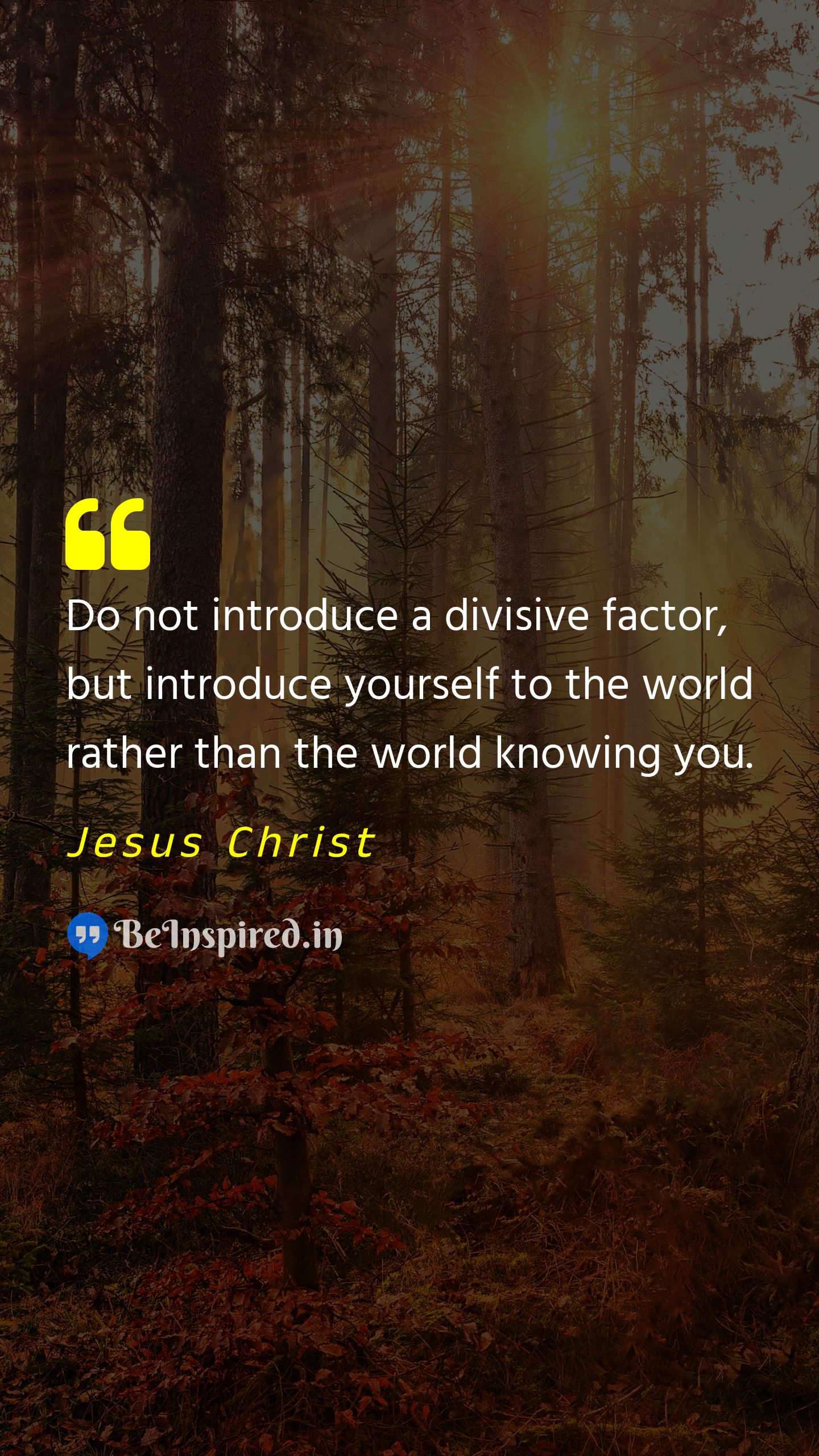 Do not introduce a divisive factor, but introduce yourself to the world rather than the world knowing you.