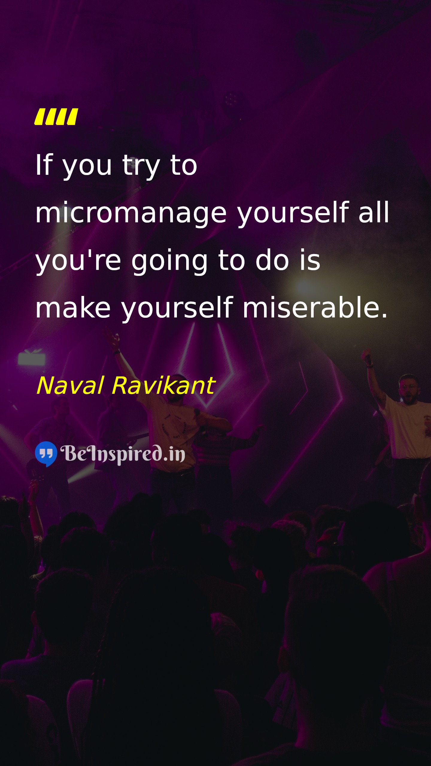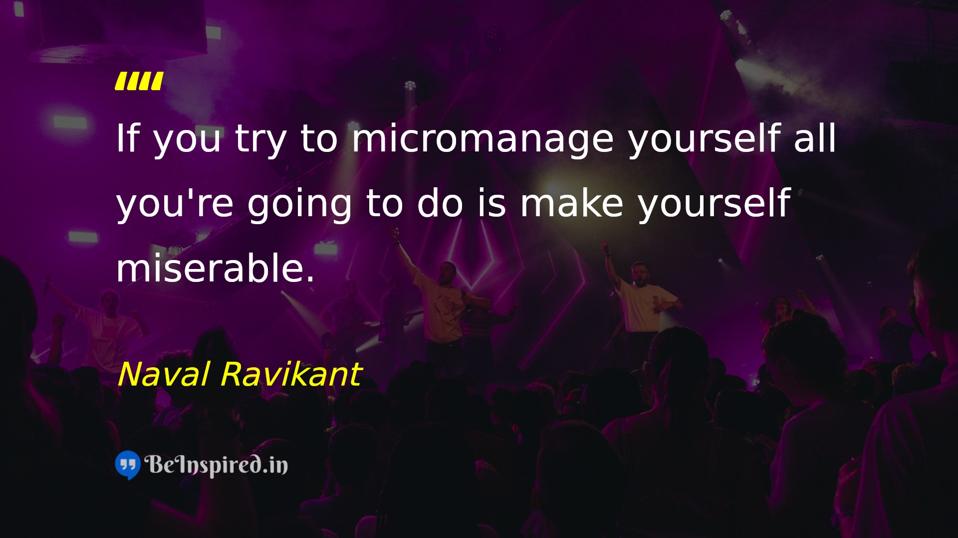 If you try to micromanage yourself all you're going to do is make yourself miserable.