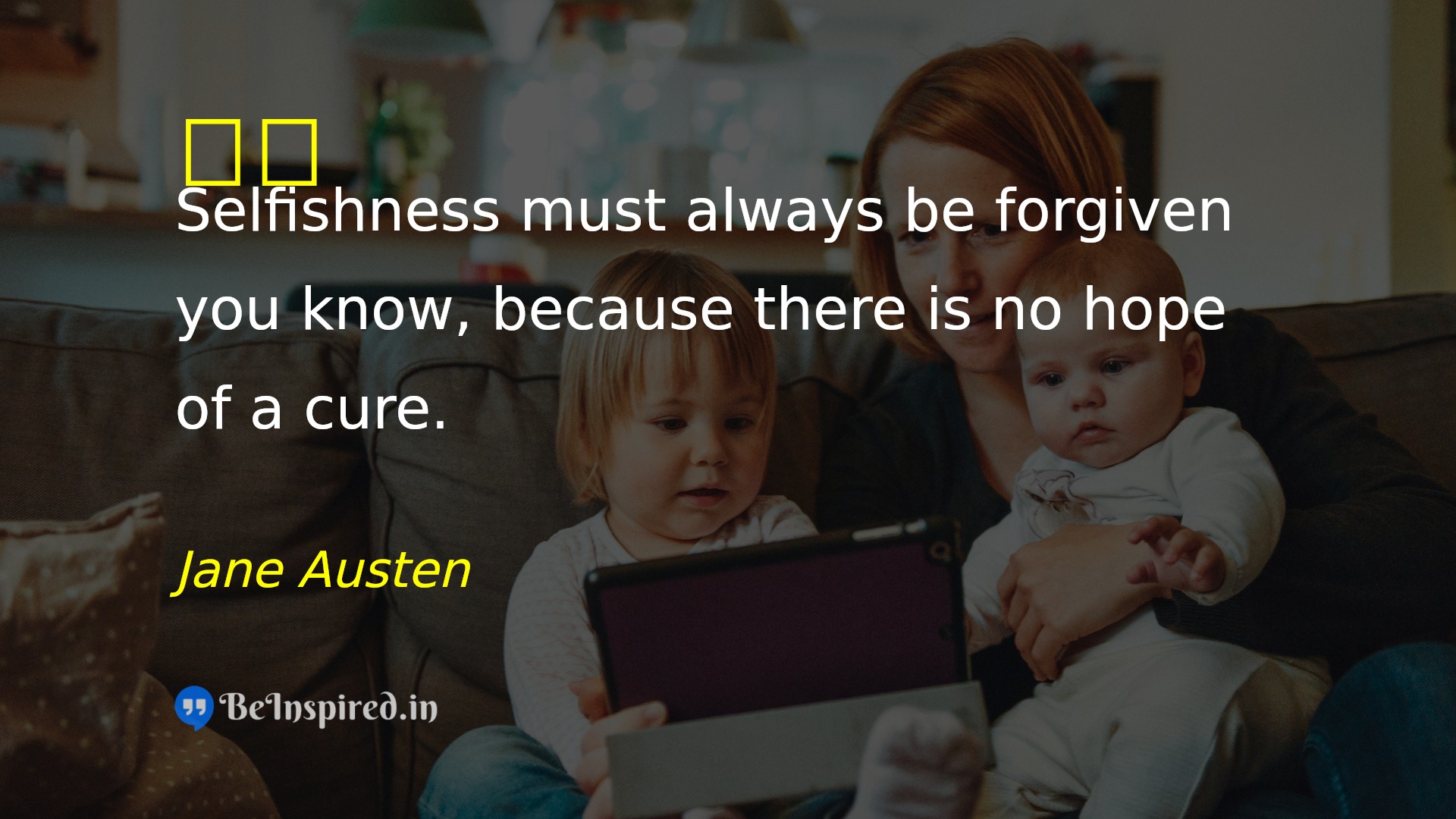 Selfishness must always be forgiven you know, because there is no hope of a cure.