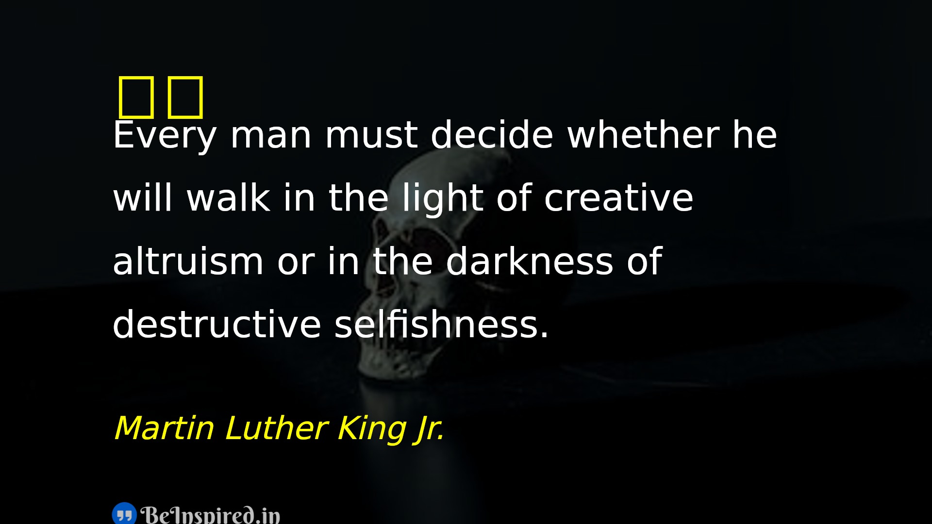 Every man must decide whether he will walk in the light of creative altruism or in the darkness of destructive selfishness.