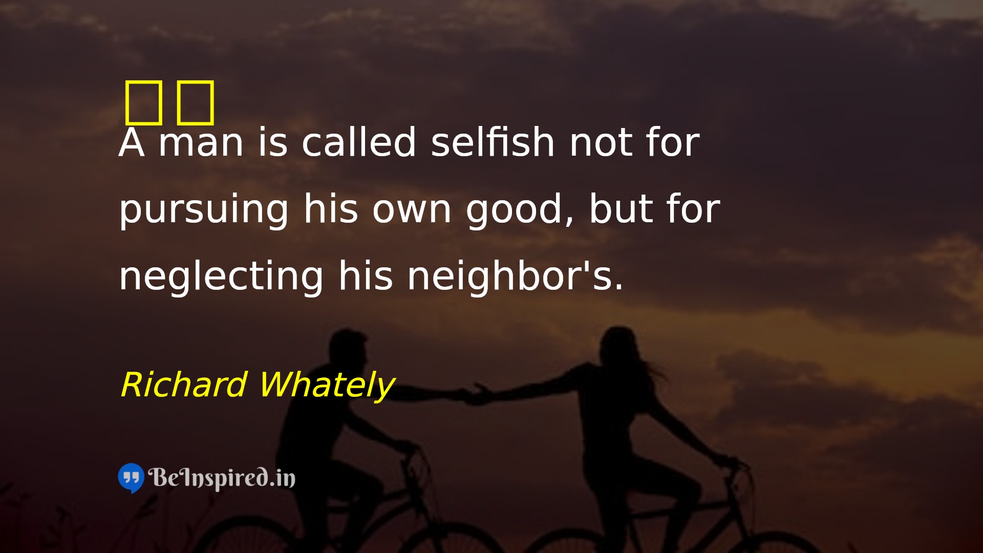 A man is called selfish not for pursuing his own good, but for neglecting his neighbor's.