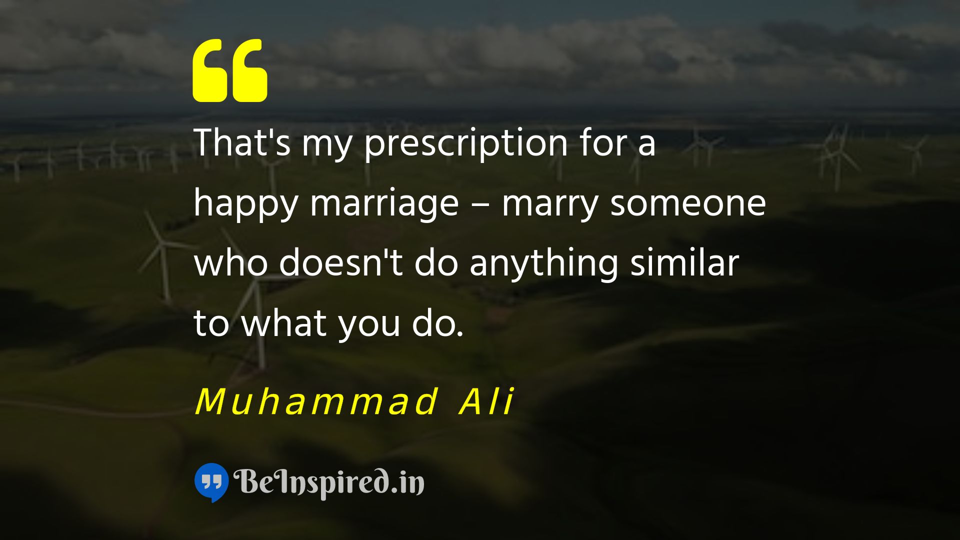 That's my prescription for a happy marriage – marry someone who doesn't do anything similar to what you do.