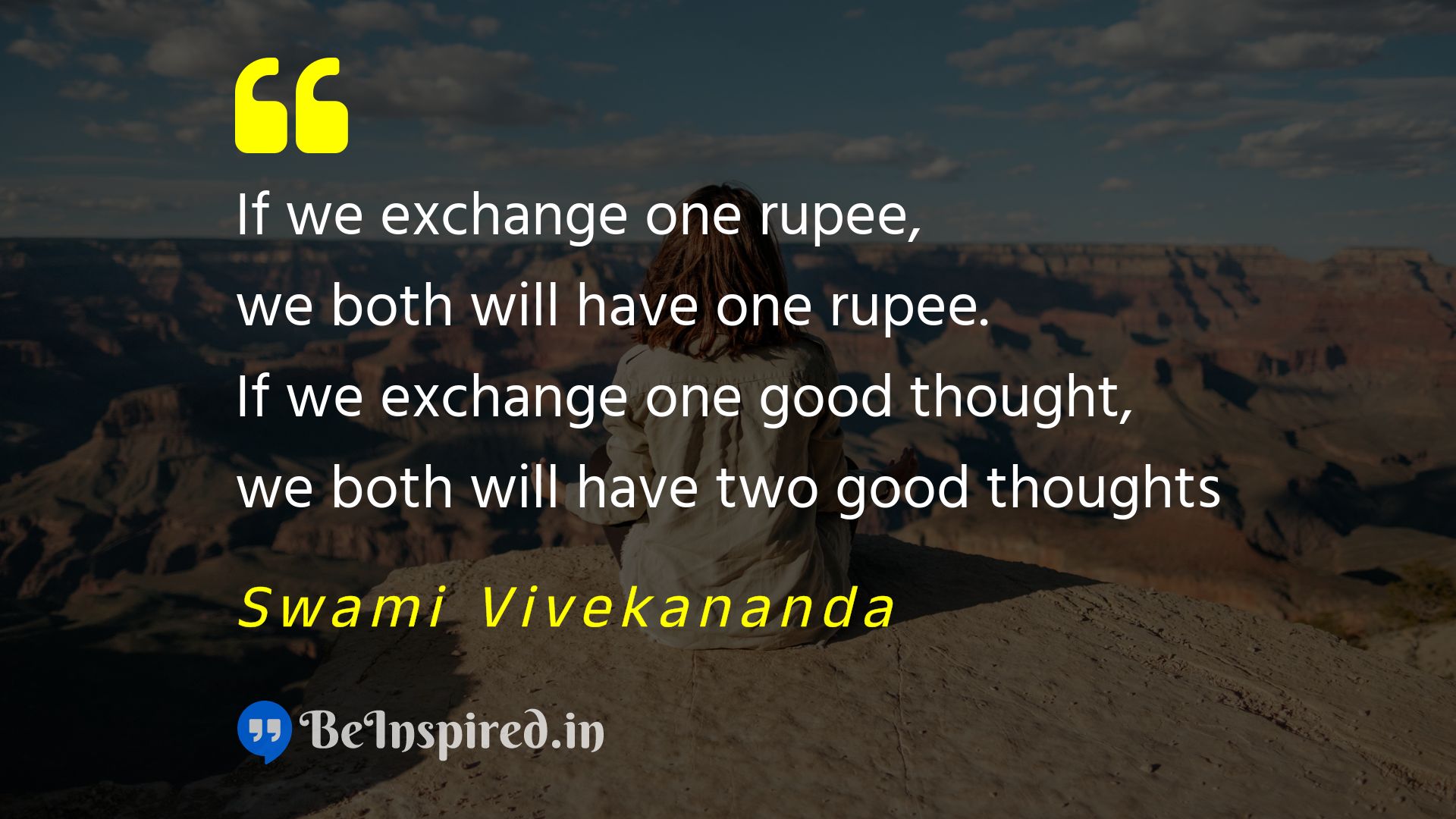 If we exchange one rupee, we both will have one rupee. If we exchange one good thought, we both will have two good thoughts