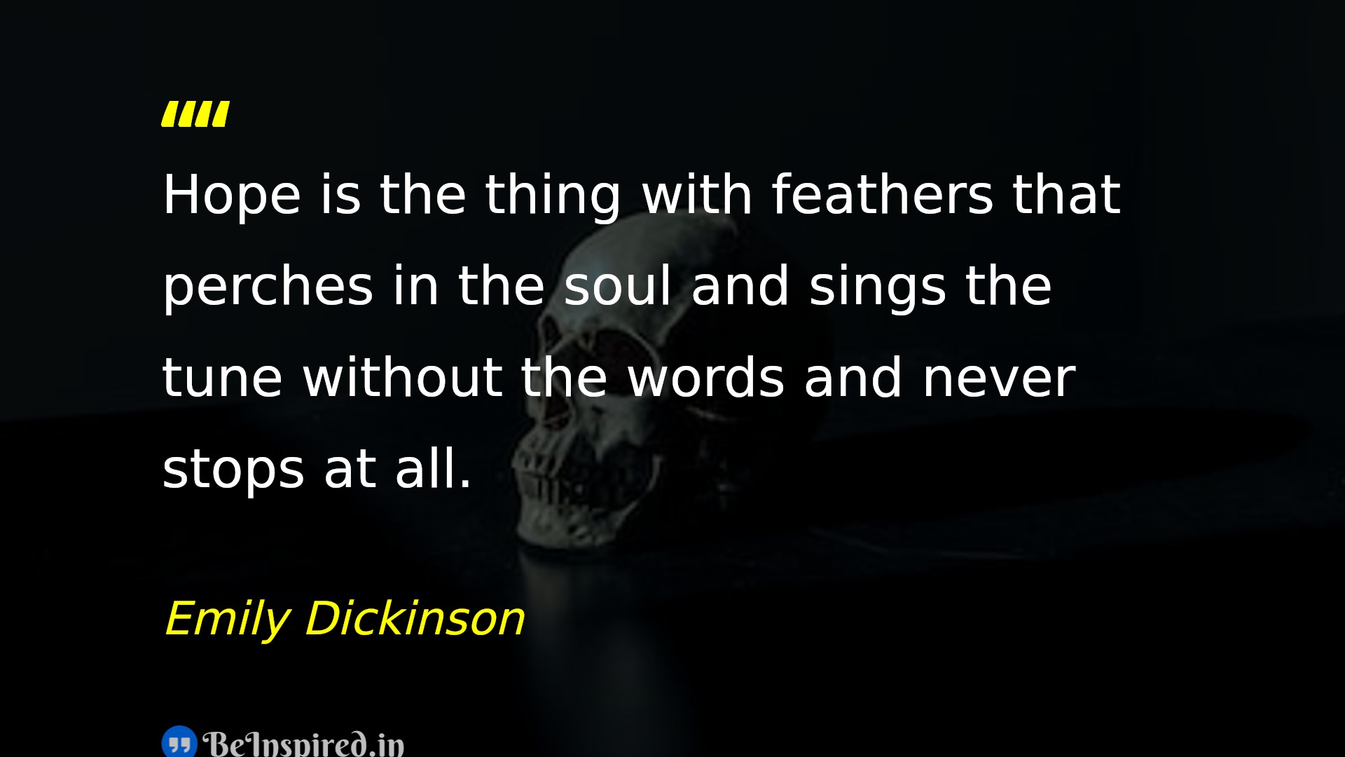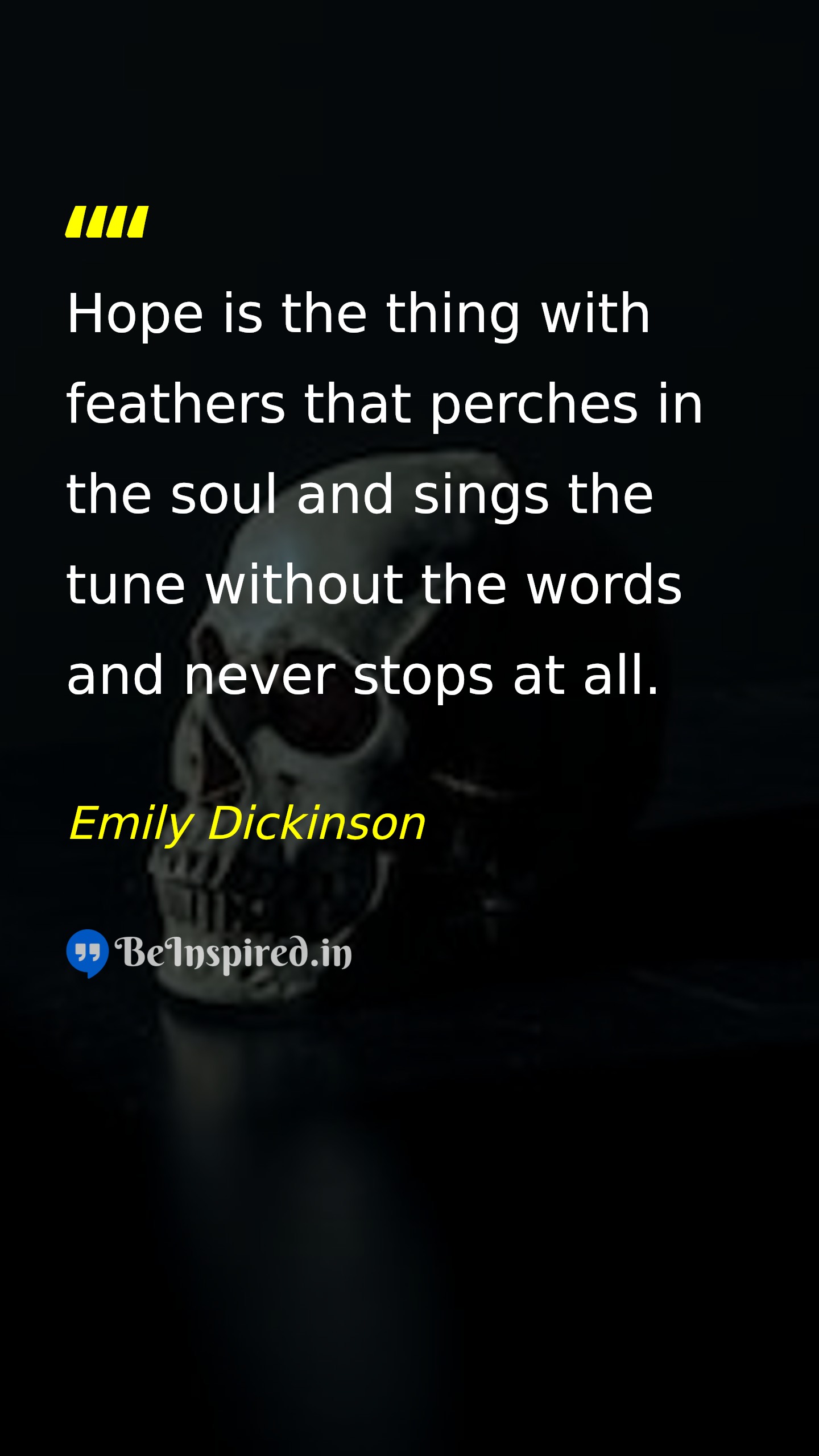 Hope is the thing with feathers that perches in the soul and sings the tune without the words and never stops at all.