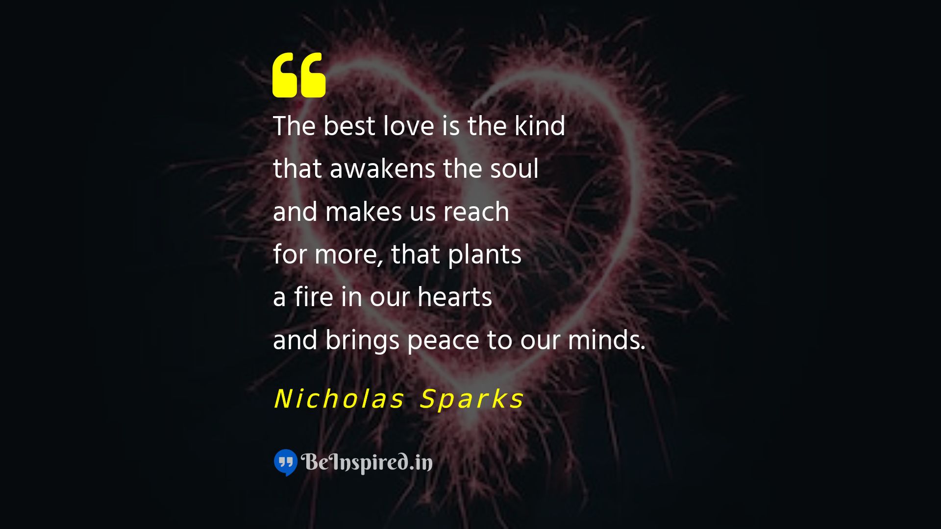 The best love is the kind that awakens the soul and makes us reach for more, that plants a fire in our hearts and brings peace to our minds.
