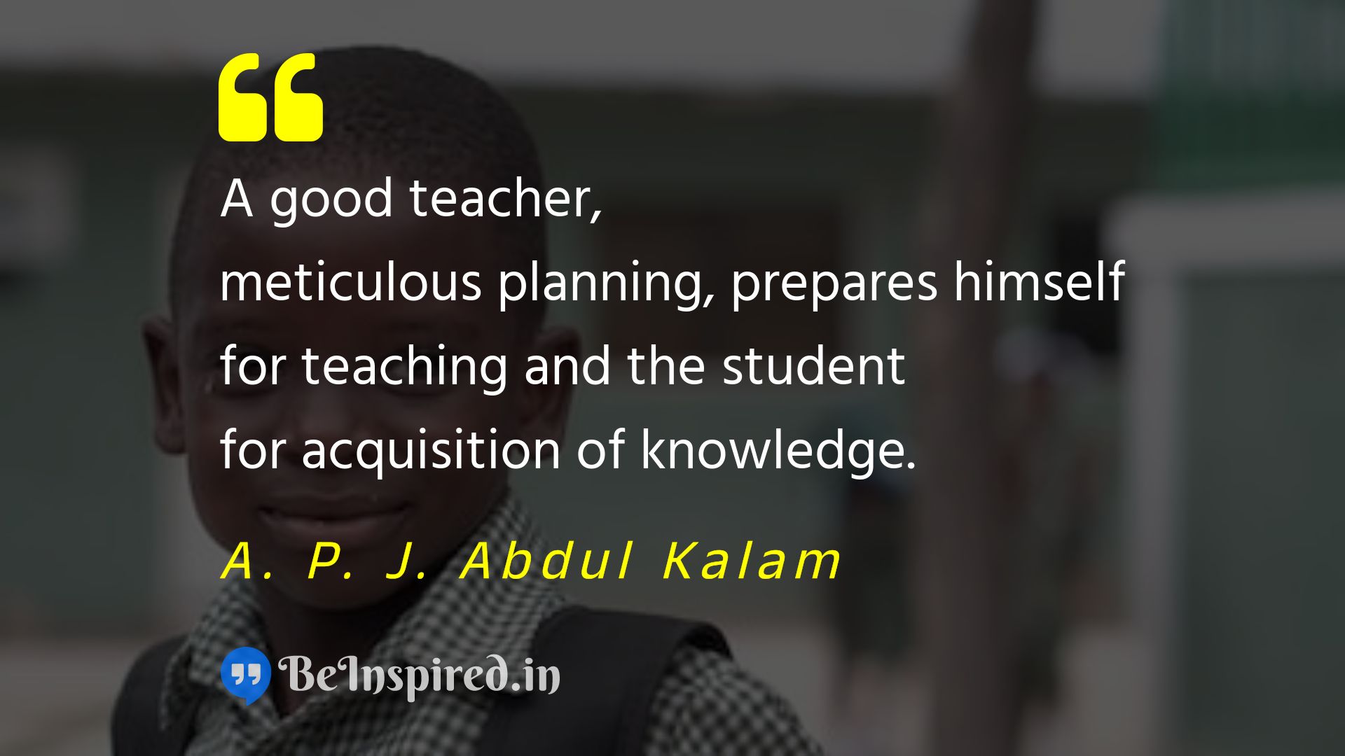 A good teacher, meticulous planning, prepares himself for teaching and the student for acquisition of knowledge.
