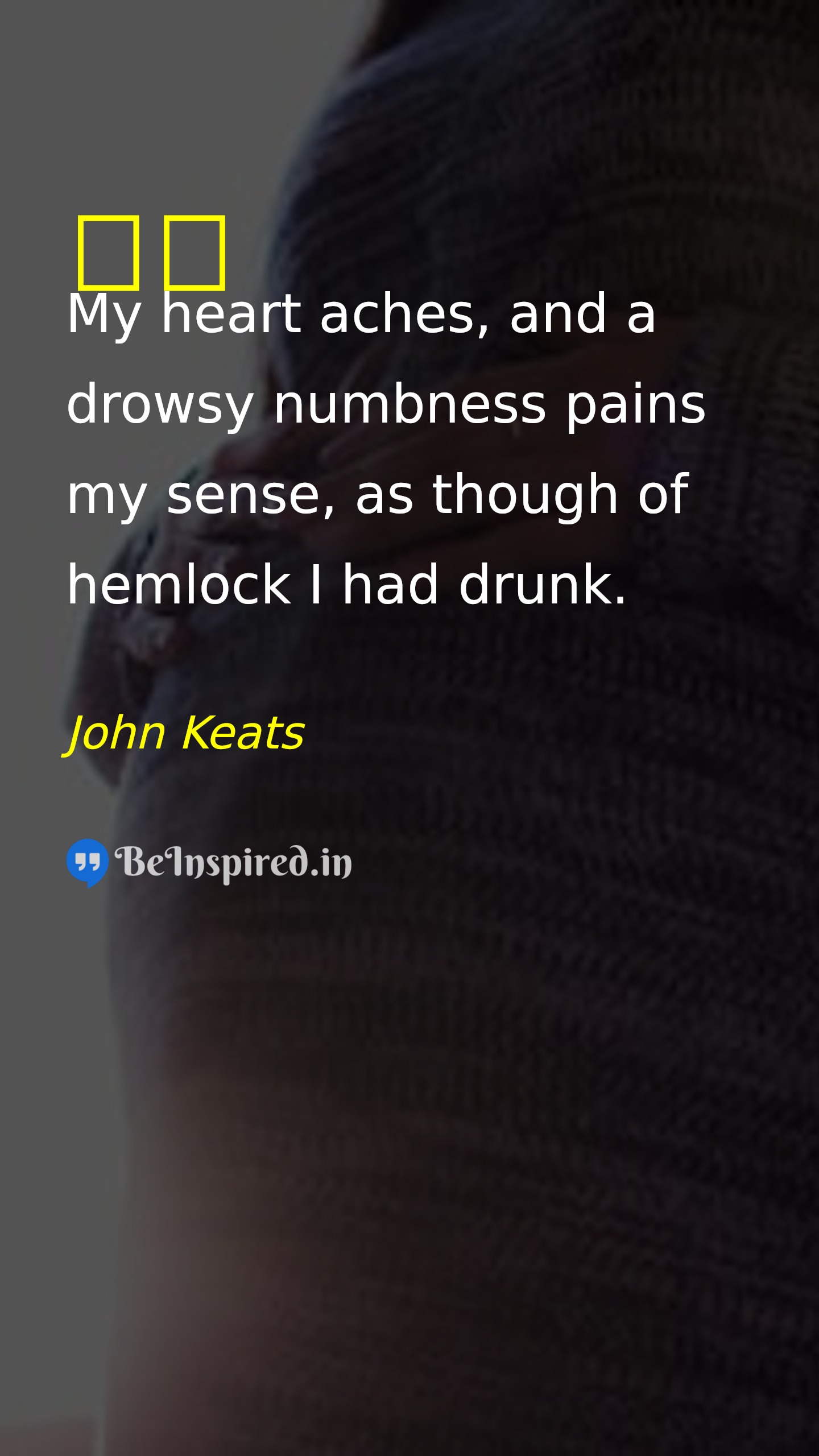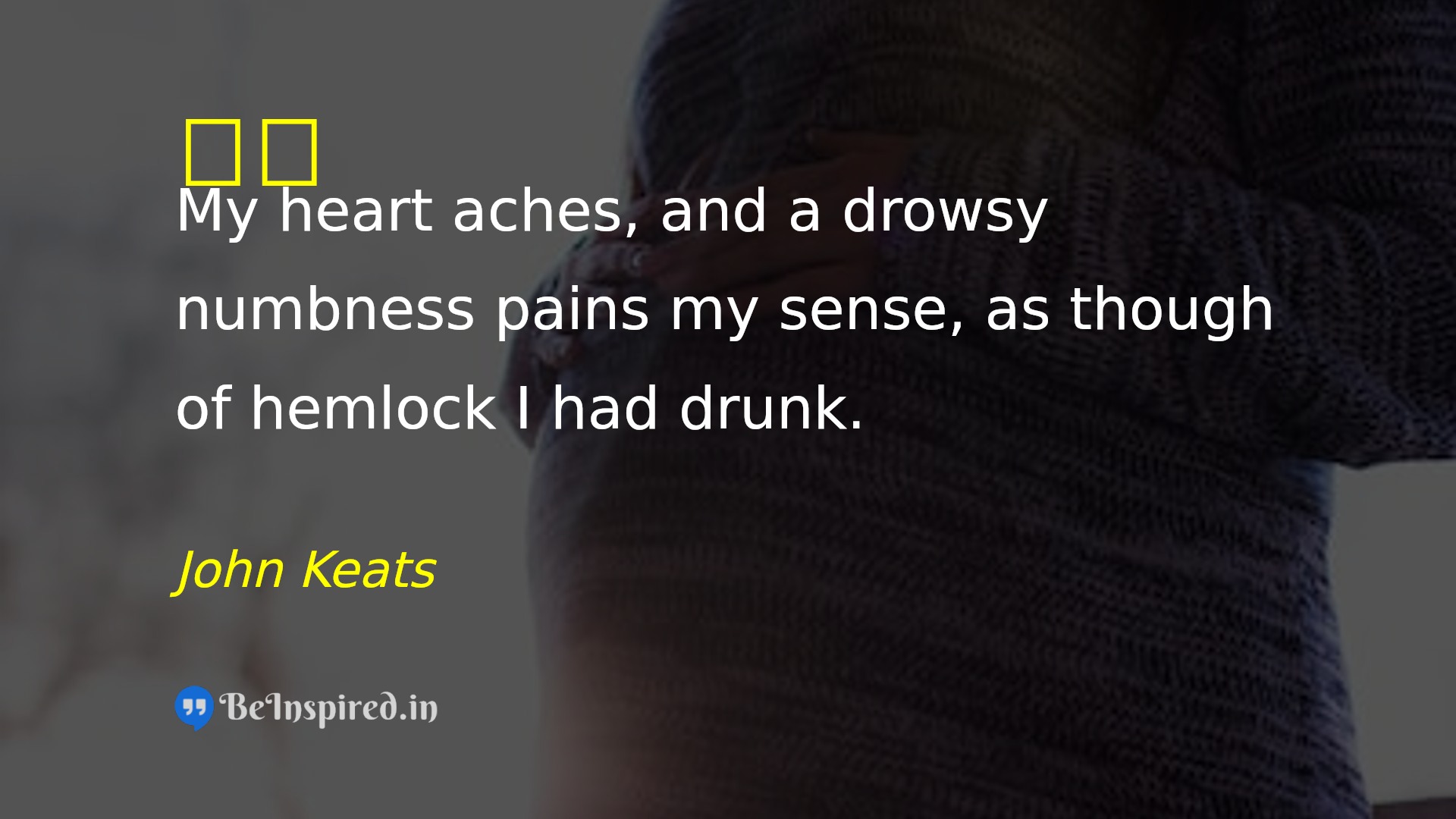 My heart aches, and a drowsy numbness pains my sense, as though of hemlock I had drunk.