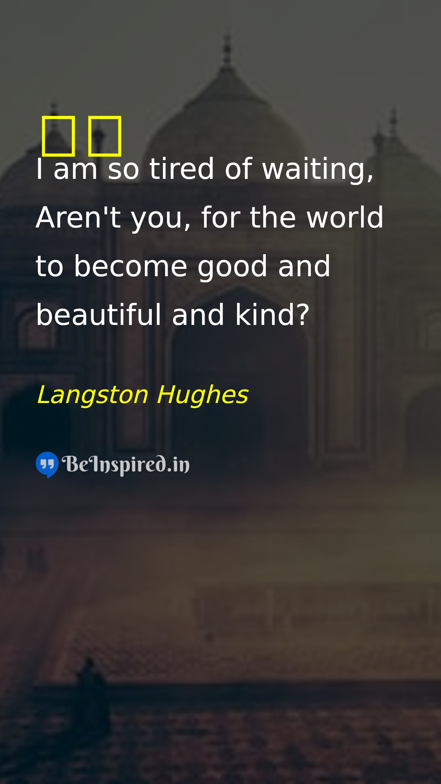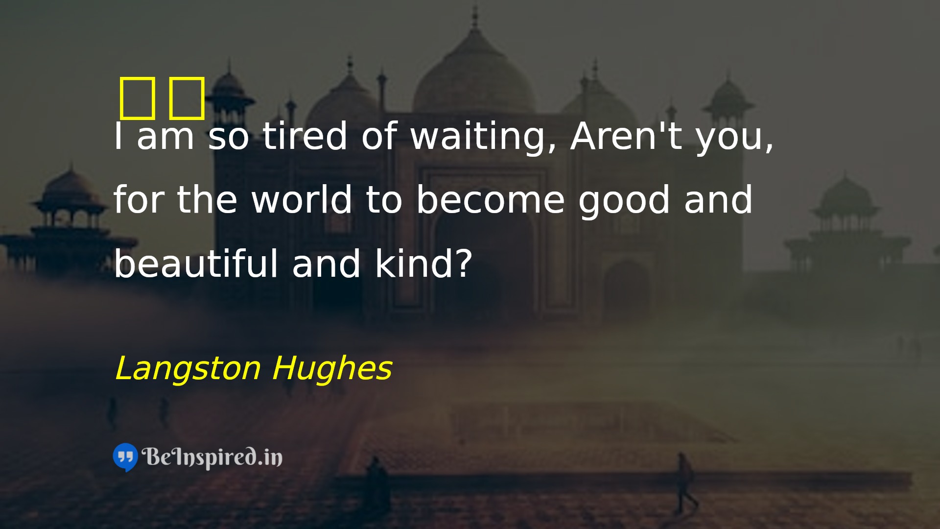 I am so tired of waiting, Aren't you, for the world to become good and beautiful and kind?