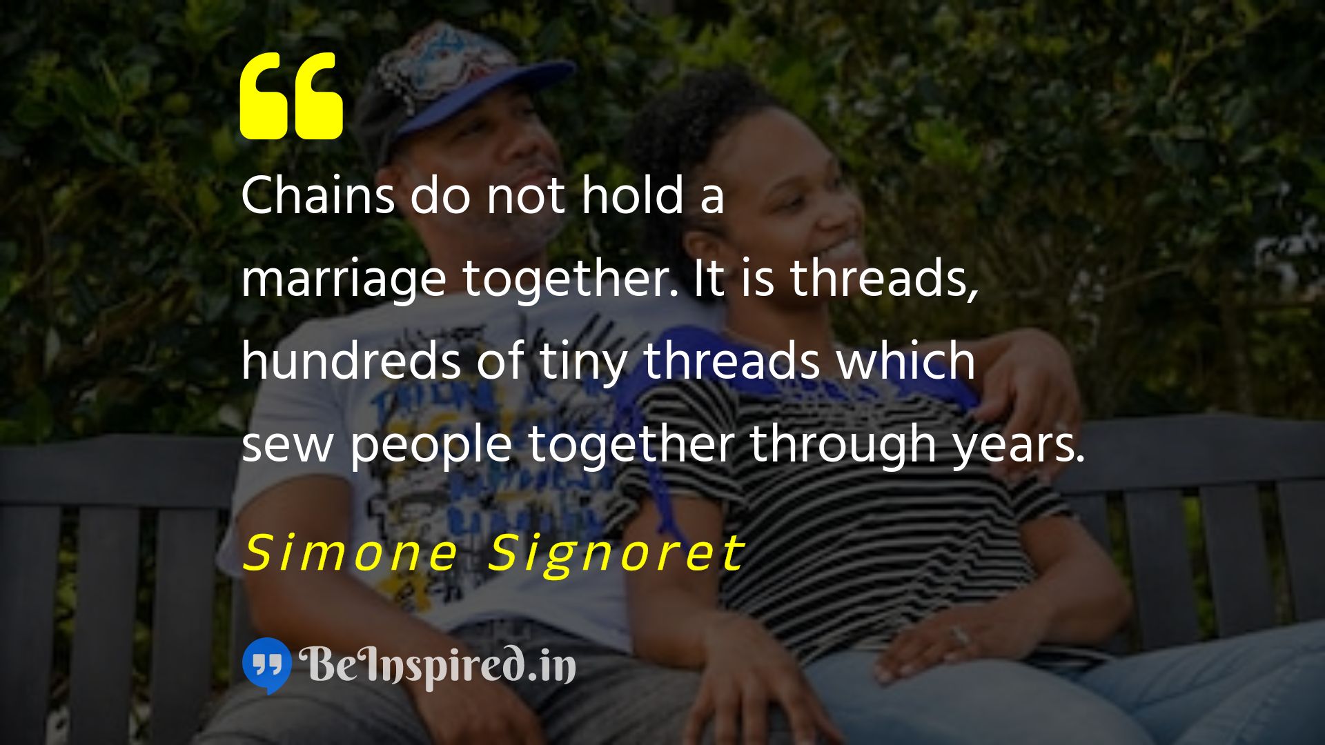 Chains do not hold a marriage together. It is threads, hundreds of tiny threads which sew people together through years.