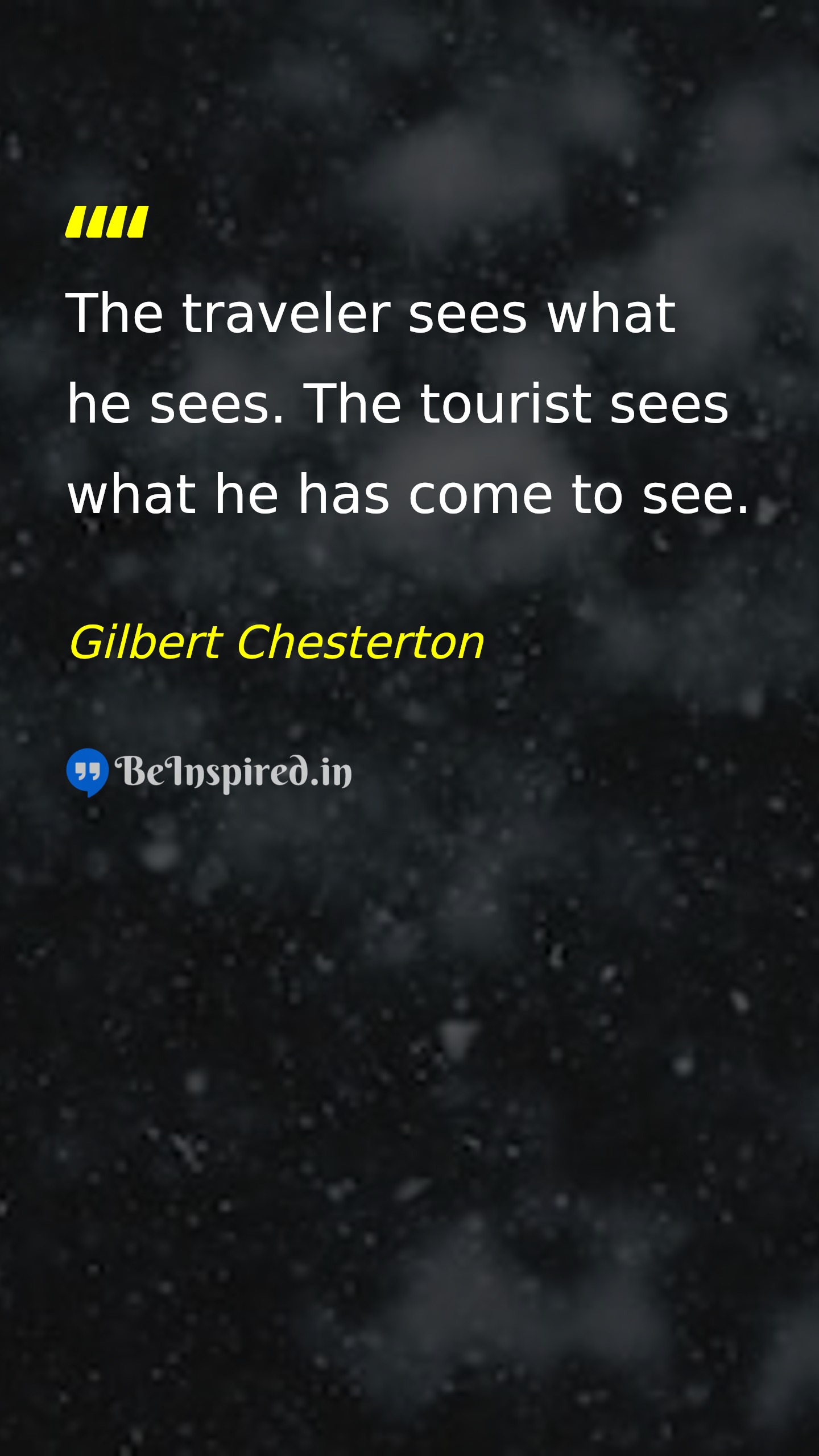 The traveler sees what he sees. The tourist sees what he has come to see.
