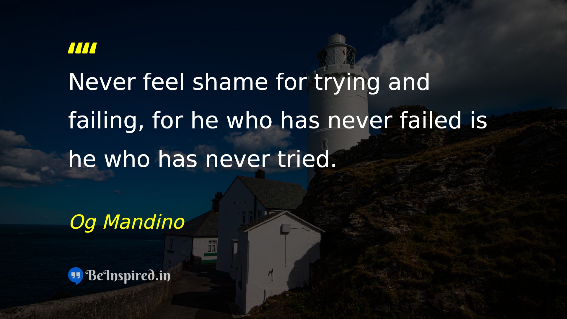 Never feel shame for trying and failing, for he who has never failed is he who has never tried.