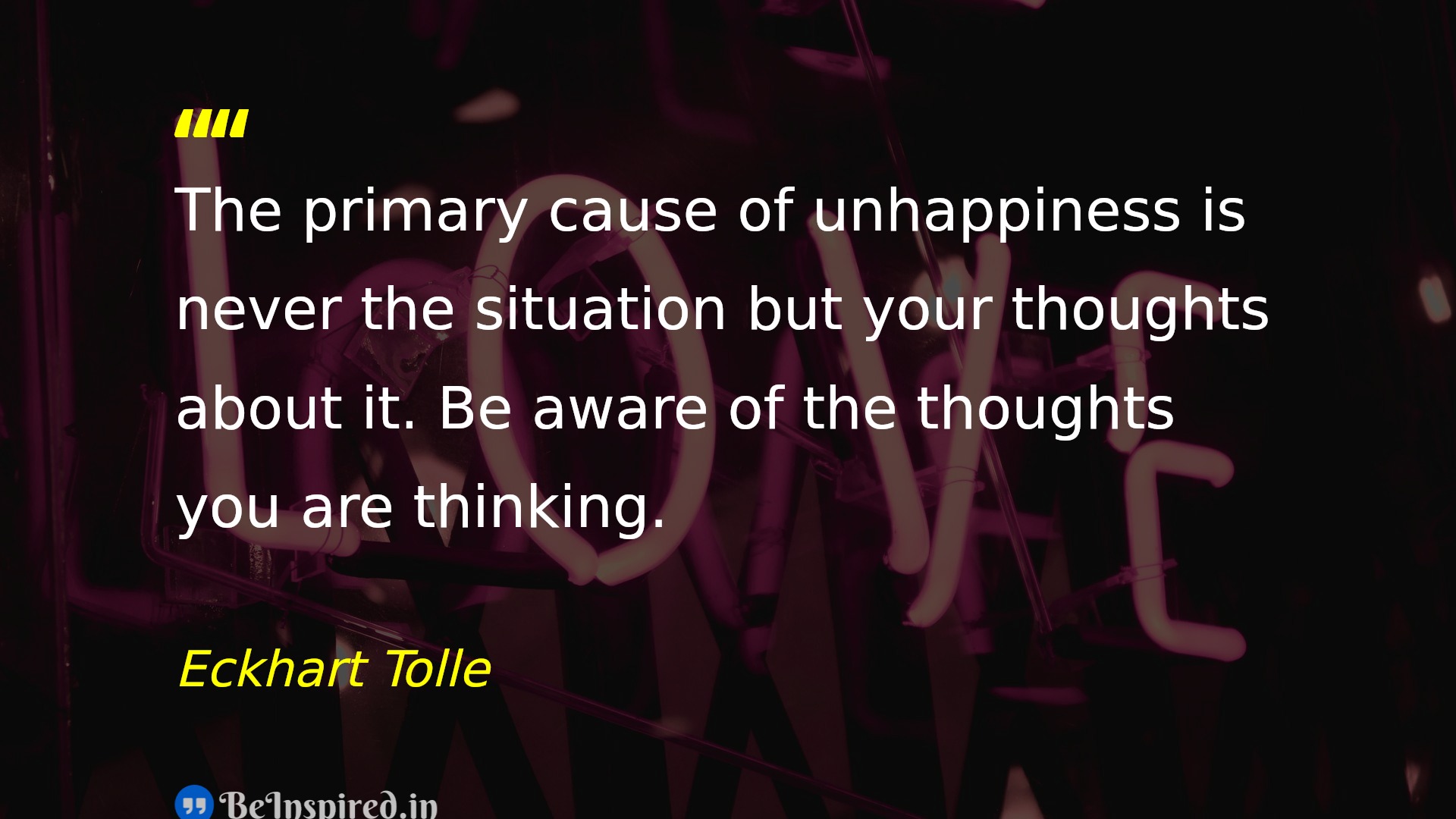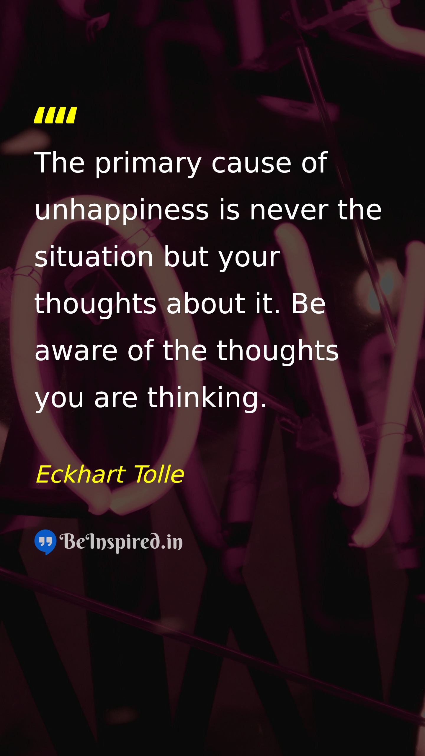 The primary cause of unhappiness is never the situation but your thoughts about it. Be aware of the thoughts you are thinking.