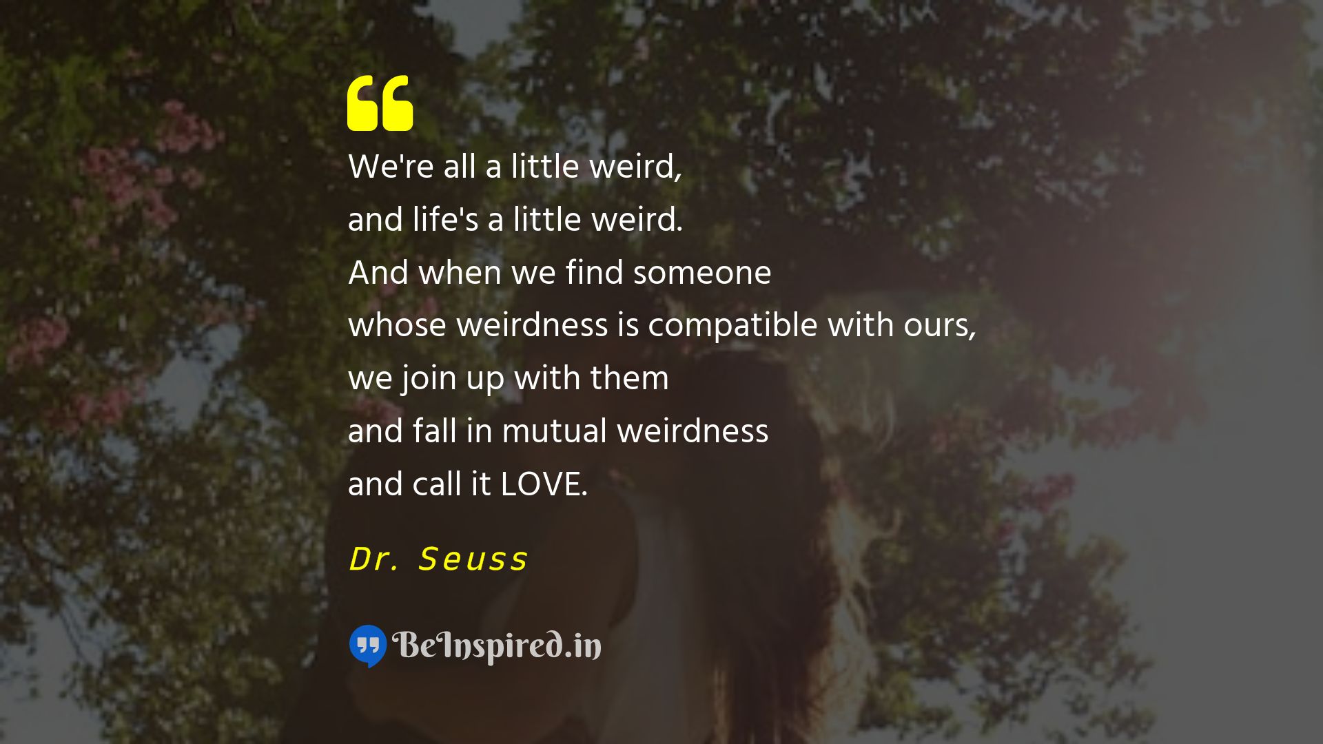 We're all a little weird, and life's a little weird. And when we find someone whose weirdness is compatible with ours, we join up with them and fall in mutual weirdness and call it LOVE.