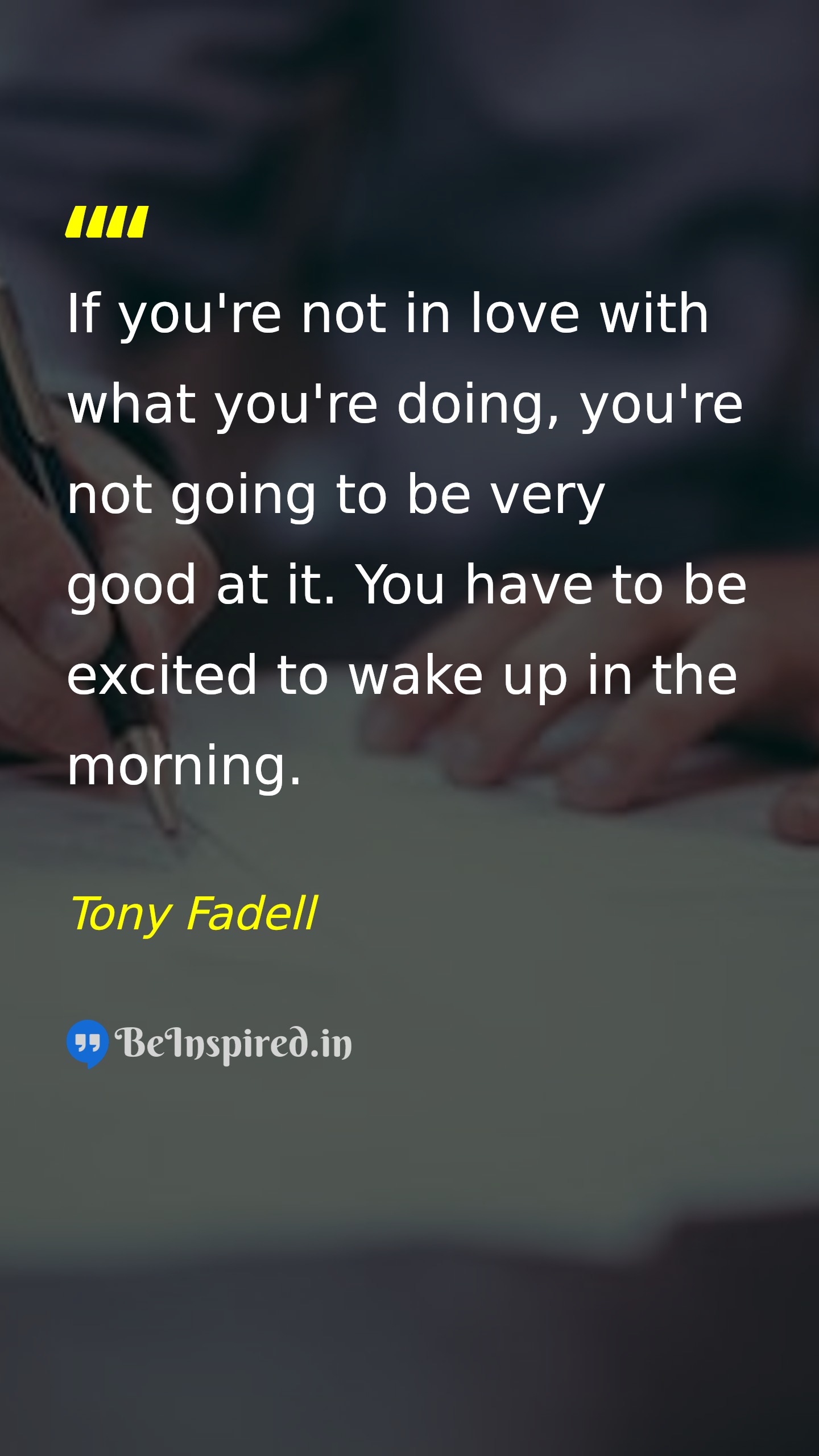 If you're not in love with what you're doing, you're not going to be very good at it. You have to be excited to wake up in the morning.